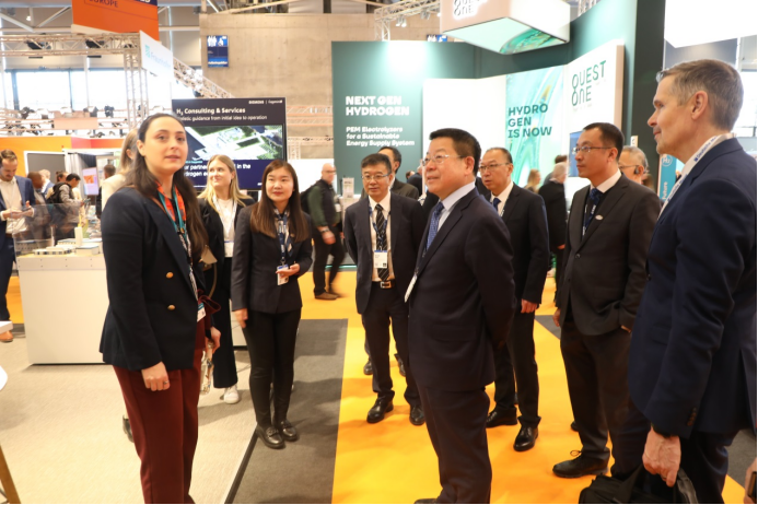 展會期間,中船集團舉辦了電解水制氫設(shè)備、超高溫大型工業(yè)熱泵、智能裝備解決方案等30余場專題推介會,發(fā)布了全球單體最大3000立方電解水制氫設(shè)備,與德國、瑞典兩家客戶簽約電解水制氫項目合作協(xié)議,與全球眾多客戶進行了技術(shù)與產(chǎn)品交流,深入推進國際市場營銷,進一步提升了中船集團新興產(chǎn)業(yè)的國際影響力。此外,中船集團還組織相關(guān)成員單位赴德國、法國等地,與林德、德希尼布和施耐德等全球知名跨國企業(yè)進行了推介交流與合作洽談,進一步鞏固合作關(guān)系,為后續(xù)深化合作奠定基礎(chǔ)。同時,組織與中國國機集團、國家能源集團等中國企業(yè),就展覽展會、品牌宣傳、國際項目合作等方面進行交流,攜手拓展國際市場。