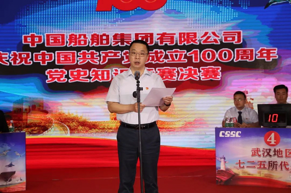 6月22日,中國船舶集團有限公司慶祝中國共產黨成立100周年黨史知識競賽在京收官。決賽階段,武漢地區七二五所代表隊脫穎而出,摘得桂冠。中國船舶集團黨組成員、副總經理盛紀綱出席決賽現場,并作講話。