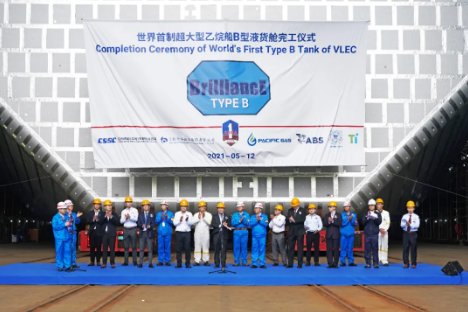 5月12日,中國船舶集團旗下江南造船舉行了世界首制99000立方米超大型液化乙烷運輸船 (VLEC) 首個B型液貨艙完工儀式,標志江南造船99000立方米VLEC建造實現(xiàn)關(guān)鍵技術(shù)突破,其自主研發(fā)的“BrilliancE?”貨物圍護系統(tǒng)實現(xiàn)工程化和節(jié)拍化生產(chǎn)。