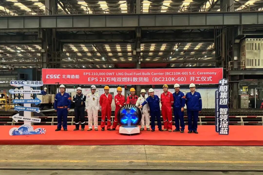 北海造船承建的新加坡EPS公司21萬噸液化天然氣(LNG)雙燃料動力散貨船項目60號船和比利時CMB.TECH公司21萬噸散貨船項目79號船順利開工。60號船是該系列船舶中的第4艘,79號船是北海造船為該船東建造的第27艘同型船。